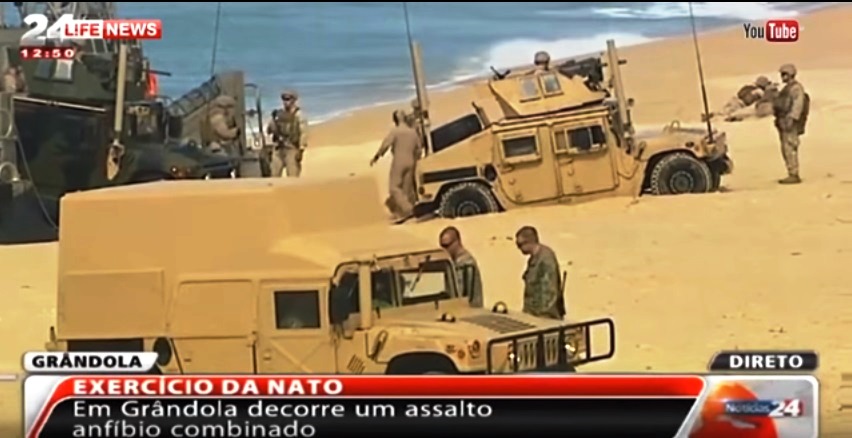 Затруднения с передвижением по песчаному пляжу, испытывали не только "Хаммеры", но и боевые машины пехоты. Им пришлось сжечь немало топлива, чтобы преодолеть узкую полоску пляжа и подняться на возвышающийся над ним берег. Техника и военнослужащие НАТО высадились в море с борта большого десантно-вертолетного корабля-дока USS Arlington, который оставался в 100 километрах от берега к югу от Лиссабона.